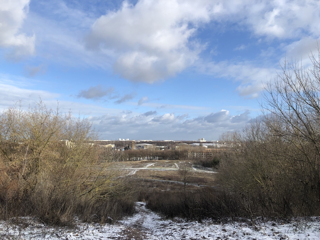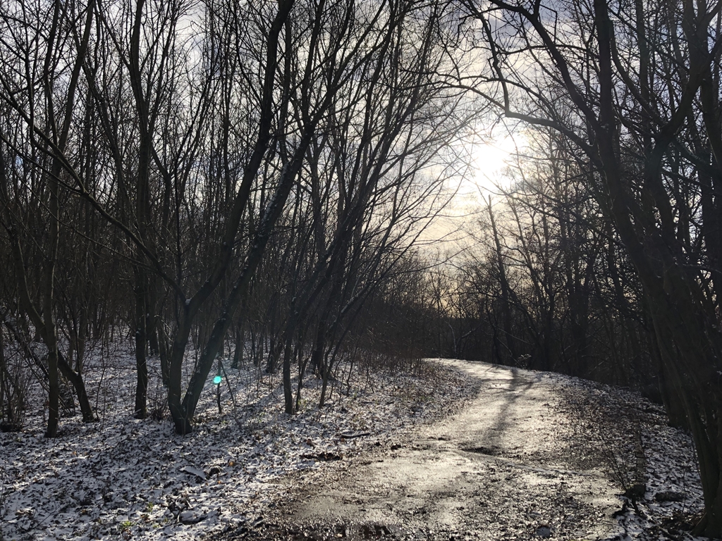 Sie schläft. Wie vorgenommen, quäle ich mich die Hügel im Volkspark hinauf, um etwas für die Fitness zu tun. Mit der Wintersonne sieht die Welt um uns herum gleich freundlicher aus.