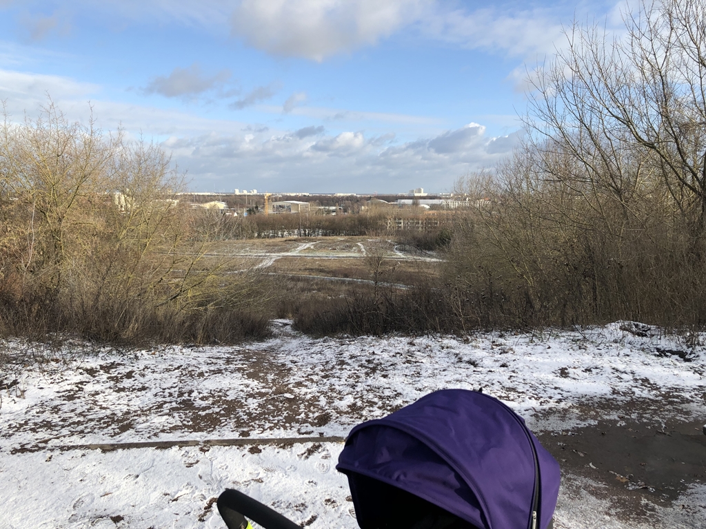 Der nächtliche Sturm hat etwas Schnee nach Berlin gebracht und so kann ich mein Baby mit Blick auf ein weißes Dach begrüßen. Nach dem Frühstück und ein wenig Krabbelei begeben wir uns auf die Morgenrunde.