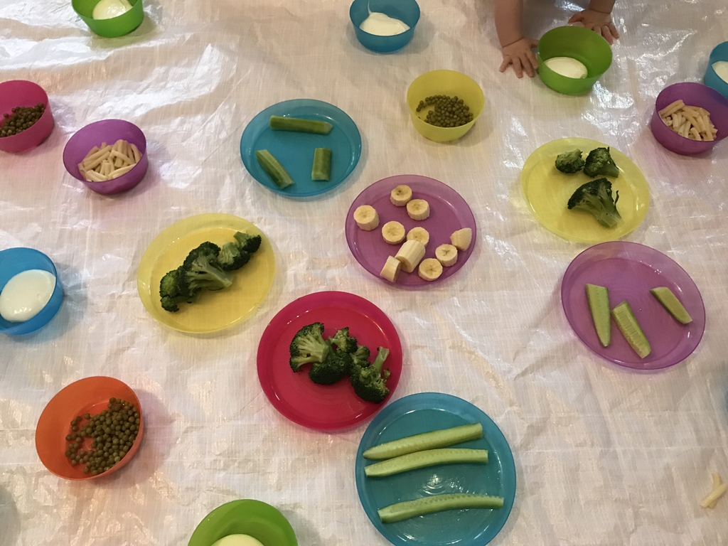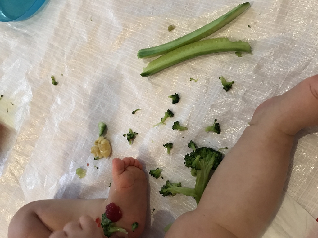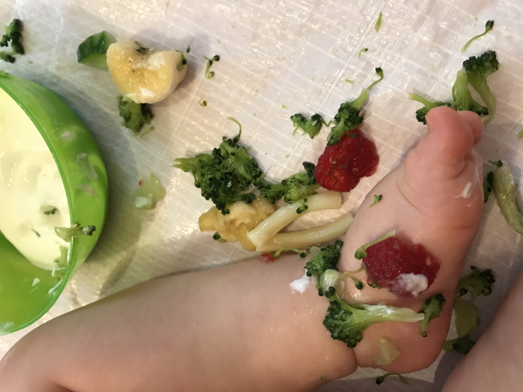 Beim Babykrabbeln wird heute gepicknickt. Probiert werden können Gurke, Nudeln, Brokkoli, Banane, Himbeere, Natur-Joghurt und Erbsen. Unsere Tochter bevorzugt die Gurken und Brokkoli. Die Himbeere wird zwar gekaut, aber ausgespuckt. Ansonsten zeigt sie allen, wie schön sie inzwischen stehen kann. Sogar beim abschließenden Bad im Eimer will sie nicht mehr sitzen sondern stehen. Die heutige Veranstaltung bringt aber auch einen Disput mit sich. Im Gerangel um einen Korb voller Tischtennisbälle wird unser Baby erst zur Seite gedrängelt und dann an den Haaren gezogen, was ein paar Tränen zur Folge hat.