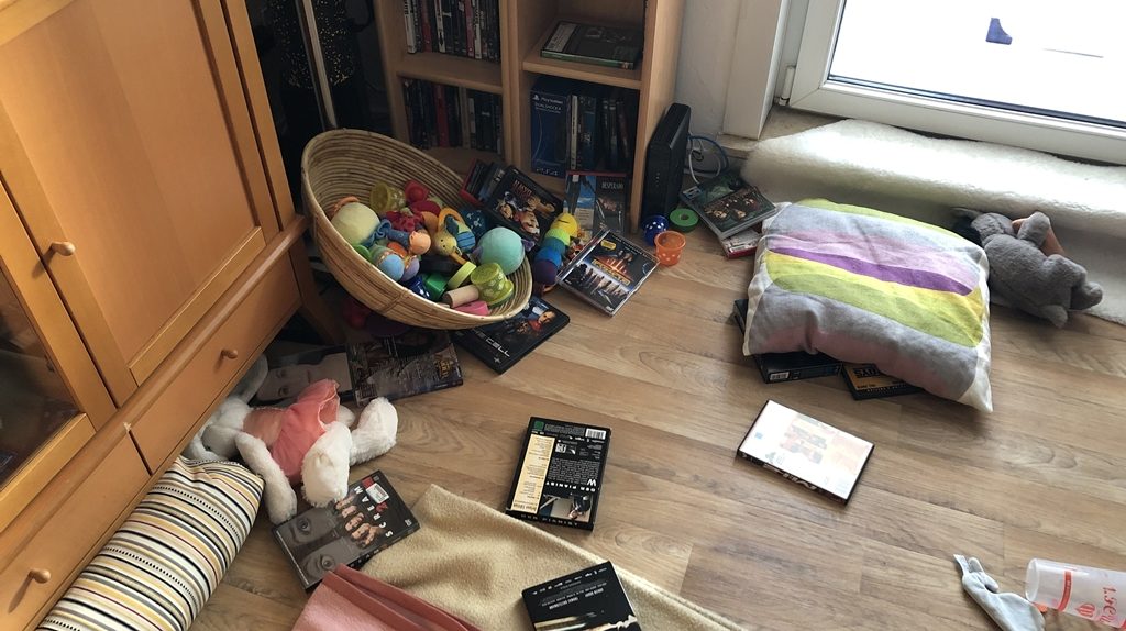 Als ich zu Hause das Wohnzimmer betrete, vermute ich erst Einbrecher, aber da nur Unordnung herrscht und nichts fehlt, tippe ich auf Vandalismus. Und dafür kommt nur Eine in Frage. Auch hier muss eine Verbesserung her.